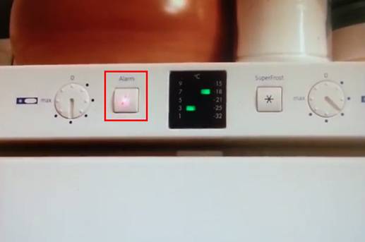 Здравствуйте! Холодильник LIebherr. Иногда начинает попискивать, паузы между писками не равномерные. Индикации ошибок нет, двери закрыты, температура нормальная 5/-18 При нажатии на кнопку Alarm — пищать прекращает. Что это может быть?