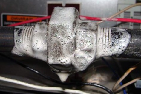 - Локринговые соединения. Места заводской пайки трубопровода охлаждающего контура чаще всего становятся местом утечки. Причиной может быть как естественный износ, так и изначально некачественное соединение.